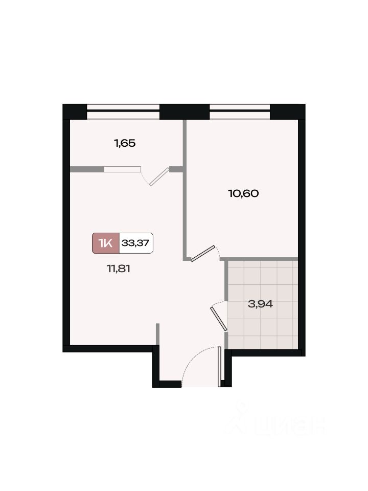 Общая площадь33,37 м²