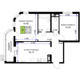 Продаётся 2-комнатная квартира в строящемся доме (Литер 19), срок сдачи: IV-кв. 2026, общей площадью 63.55 кв.м., на 11 этаже. Жилой комплекс "Фонтаны" - дом клубного типа. Преимущество заключается в продуманном ландшафте дворов, круглосуточно охраняемой территории, системе видеонаблюдения во дворе. Также для удобства жителей проведен Wi-Fi во дворе, оборудованы безопасные и современные детские площадки, зоны отдыха.