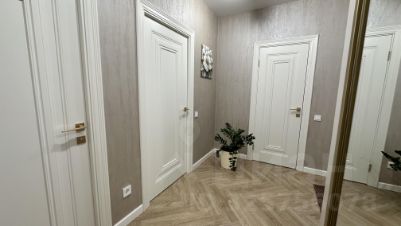 Продается уютная однокомнатная квартира с евроремонтом! Общая площадь — 43 кв. м, кухня — 14 кв. м. Квартира расположена на 10 этаже 18-этажного дома, построенного в 2013 году. Высокие потолки (2.7 м) и окна, выходящие на улицу, делают квартиру светлой и просторной.