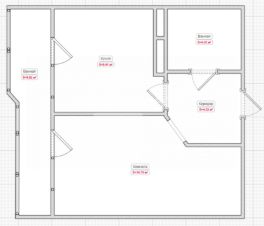 Площадь объекта 32.5м2. Высота потолка 2,7м. Кухня 9.4м2. Комната 14.7м2.