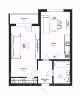 Продам большую однокомнатную квартиру в Молодёжном микрорайоне.
