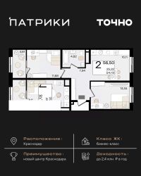 Флагманский проект группы компаний Точно - жилой комплекс бизнес-класса Патрики, это 10 домов разной этажности расположившихся на 28,5 гектарах. Жилой комплекс с концепцией город в город - прогулочные аллеи, парковая территория, 3 детских сада, 2 школы - одна из которых частная, Гранд аллея с ресторанами, фонтанами и модными бутиками, уникальные мафы и ландшафтный дизайн, создают особую атмосферу - место в котором хочется находиться. В Патриках предусмотрен и креативный кластер Цех, который включает в себя пространство для коворкинга, фудкорт, бутики, детский комплекс, лектории, фитнес-клуб Баланс с волной для сёрфа. Но и это еще не все ГК Точно уважает историю, поэтому мы сохранили 2 башни - наследство от завода "Сельмаш" исторический арт-объект назвали Мастер и Маргарита.
