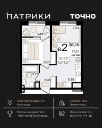 Общая площадь36,16 м²