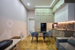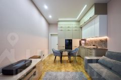 В квартире выполнен новый современный ремонт. Установлена вся необходимая мебель и техника. Проведены функции умного дома (умный шторы, умный свет).
