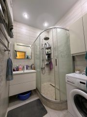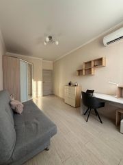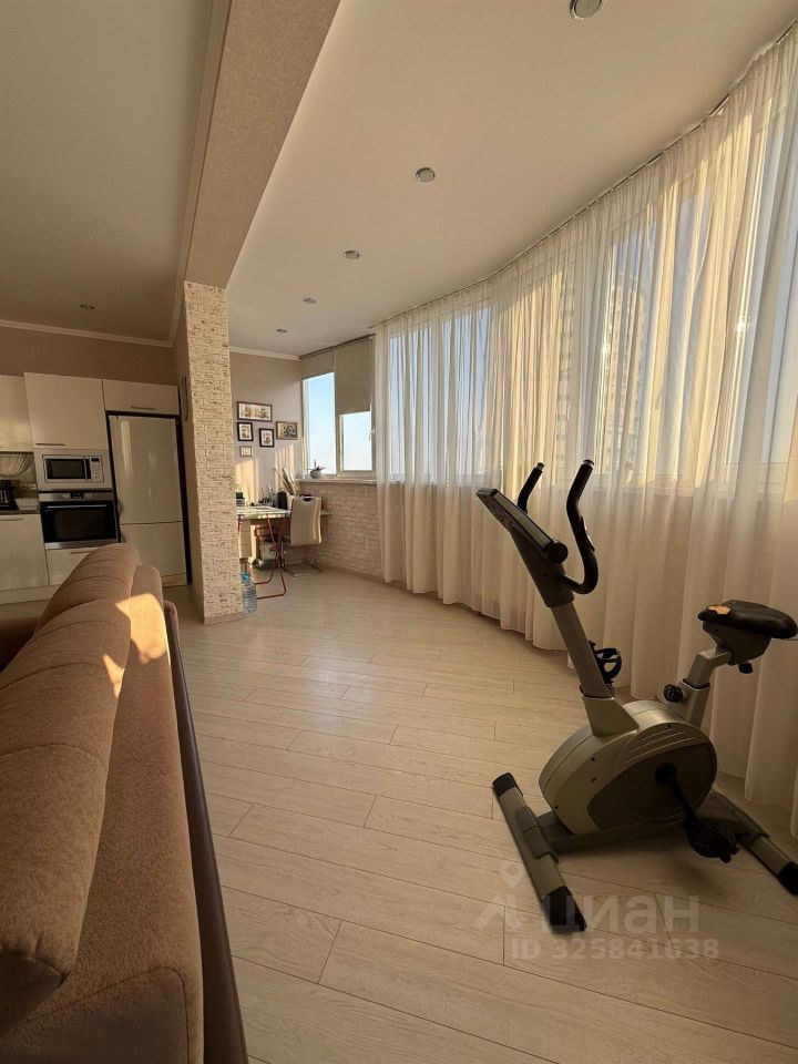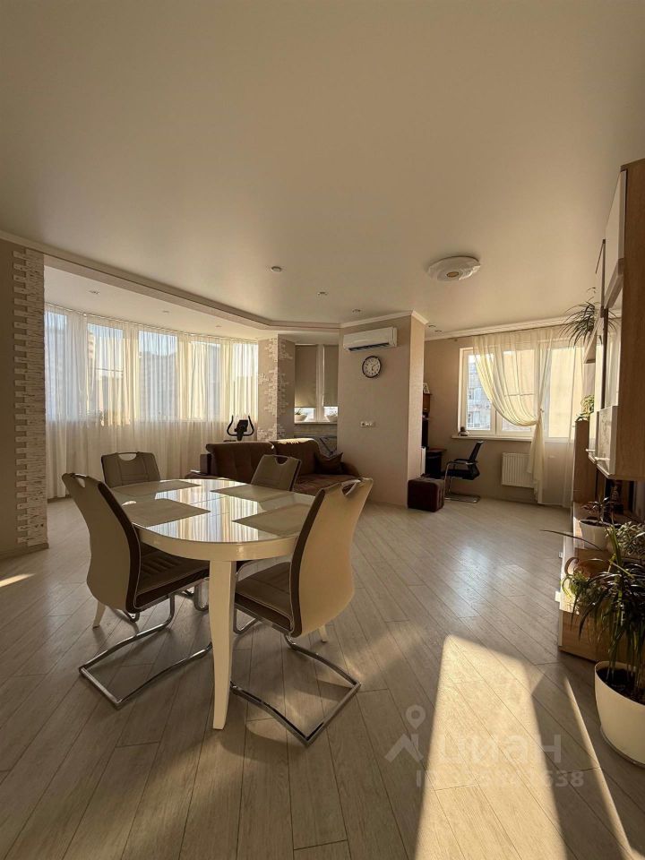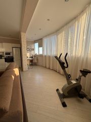 В квартире сделан ремонт в современном стиле с использованием светлых тонов. Планировка продумана до мелочей, есть две лоджии. Кухня-гостиная занимает площадь 29 квадратных метров.