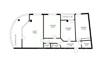 Общая площадь квартиры составляет 91,79 квадратных метров, включая 96,82 квадратных метров с учётом холодного помещения. Жилая площадь — 58,49 квадратных метров.
