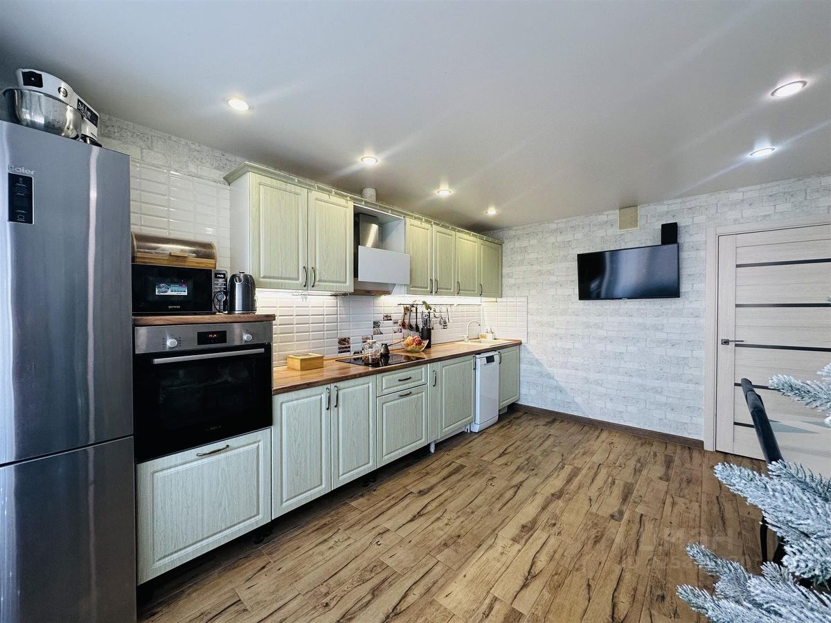 Ламинат высокого класса прочности на полу в жилых комнатах.А плитка на кухне в цвет натурального дерева и сочетается со столешницей. В санузле так же на полу и на стенах плитка. Кварцвиниловый пол на балконе долговечность. Два кондиционера. Встроенная кухонная мебель с подсветкой и с современной бытовой техникой (вытяжка и варочная панель) Вместительные шкафы в комнатах. Функциональная гардеробная в прихожей.