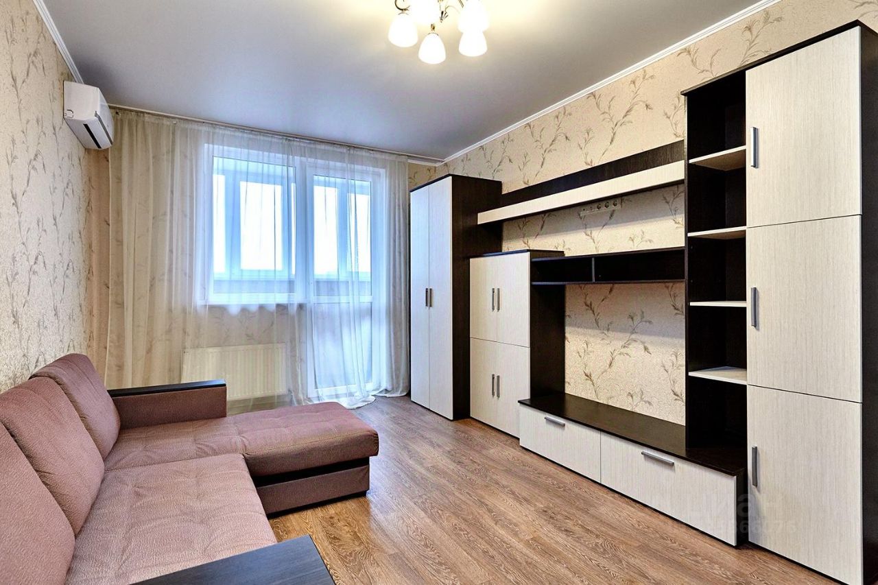 Планировка квартиры интересная: кухня-гостиная, холл площадью 10 м², где можно обустроить большую гардеробную, и ленточная лоджия площадью 8 м², которая выходит из кухни и комнаты. Квартира в хорошем состоянии, есть вся необходимая мебель и бытовая техника.