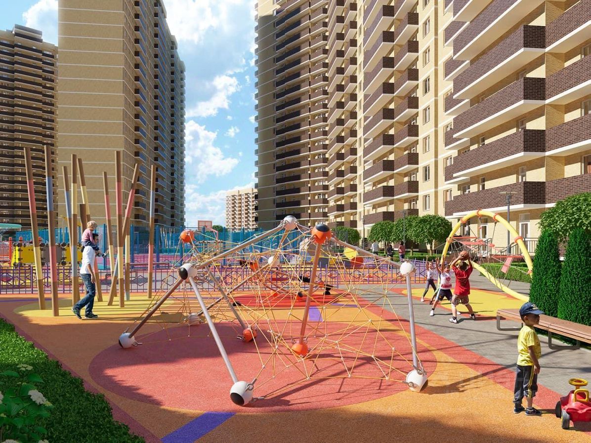 На территории комплекса ведется видеонаблюдение. На первых этажах находятся коммерческие помещения. Внутренний двор оснащен современными детскими площадками, в стилистике "Космос". Для активного отдыха предусмотрены спортивные площадки. На придомовой территории спроектирован ландшафтный дизайн, выполнено озеленение. Во дворе работает Wi-Fi. Для владельцев автомобилей предусмотрен наземный паркинг на 1959 машиномест.