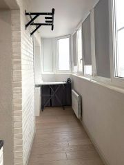 Лоджия совмещена с кухней и со спальней - утеплена и на полу также, паркетная доска.