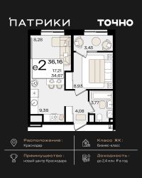 Общая площадь36,16 м²