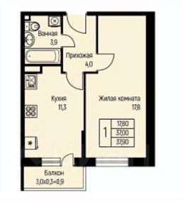 Площадь: 37,3 кв.м