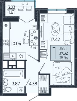 Продаётся 1 -комнатная квартира площадью 37,32 кв. м на 3 этаже в новом современном комплексе комфорт-класса от строительной компании "КОНТИНЕНТ ГРУПП" в одном из самых быстроразвивающихся районов города.
