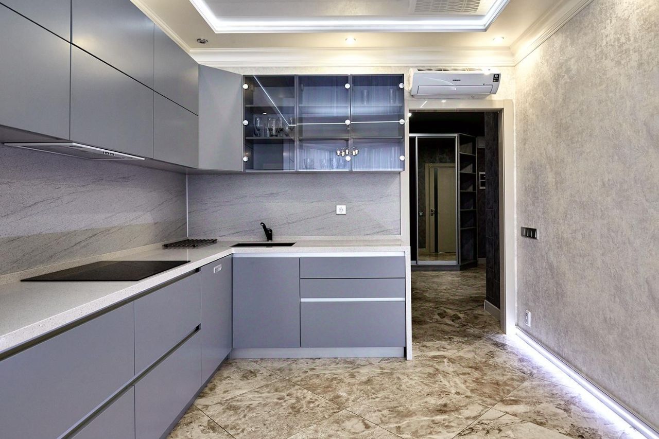 Квартира с дизайнерским ремонтом, остается мебель и техника, витражное остекление на кухне, планировка квартиры: комната -14.9 м2,кухня гостиная-22 м2, общая площадь квартиры 53 м2