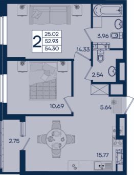 2 комнатная квартира 54.3 м² с ремонтом, на 6 этаже в жилом комплексе "Дом 101". ЖК Дом 101 - это уникальное пространство на территории 101 га. Парк 20 га с спортивными площадками и амфитеатром. Школа на 1725 мест и пять детских садов. Благоустроенные дворовые территории с детскими площадками и зонами отдыха создают комфортную среду для семей. 999