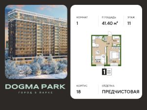 В продаже 1-комнатная квартира от застройщика! Мкр. "DOGMA PARK" г. Краснодар, Литер 18 Срок сдачи: 4 кв. 2027, общей площадью 41.4 кв.м., на 11 этаже.