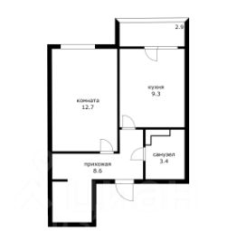 Квартира общей площадью с учетом балкона 36м2, кухня 12,7м2, санузел, в черновой отделке.