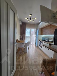 Квартира 36 м2, расположена на 7этаже 8-этажного дома. В доме есть лифт. В квартире сделан качественный, дорогой ремонт, панорамное остекление и большие террасы. Во всех комнатах - керамогранит, тёплые полы, натяжные потолки, качественные межкомнатные двери, в ванной комнате и коридоре мраморная плитка, установлена душевая, раковина, полотенце-сушилка и зеркало с большой тумбой.