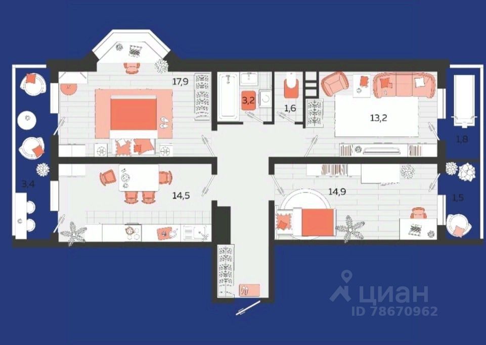 14,5 м²