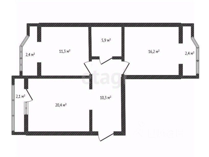 Планировка функциональна и комфортна: изолированные комнаты расположены по разным сторонам, что гарантирует приватность, а кухня-гостиная (в результате перепланировки) составляет 20,4 кв.м., формирует современное жилое пространство для семьи и приема гостей.