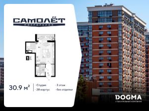 В продаже квартира-студия от застройщика! Мкр. "Самолет" 5 очередь, г. Краснодар, Литер 28 Срок сдачи: 4 кв. 2024, общей площадью 30.9 кв.м., на 3 этаже.