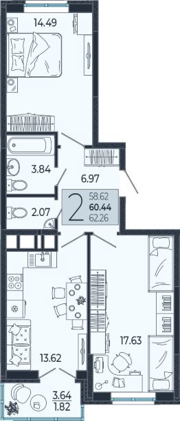 Продаётся 2 -комнатная квартира площадью 60,44 кв. м на 13 этаже в новом современном комплексе комфорт-класса от строительной компании "КОНТИНЕНТ ГРУПП" в одном из самых быстроразвивающихся районов города.