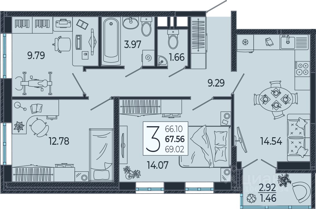 Продаётся 3 -комнатная квартира площадью 67,56 кв. м на 17 этаже в новом современном комплексе комфорт-класса от строительной компании "КОНТИНЕНТ ГРУПП" в одном из самых быстроразвивающихся районов города.