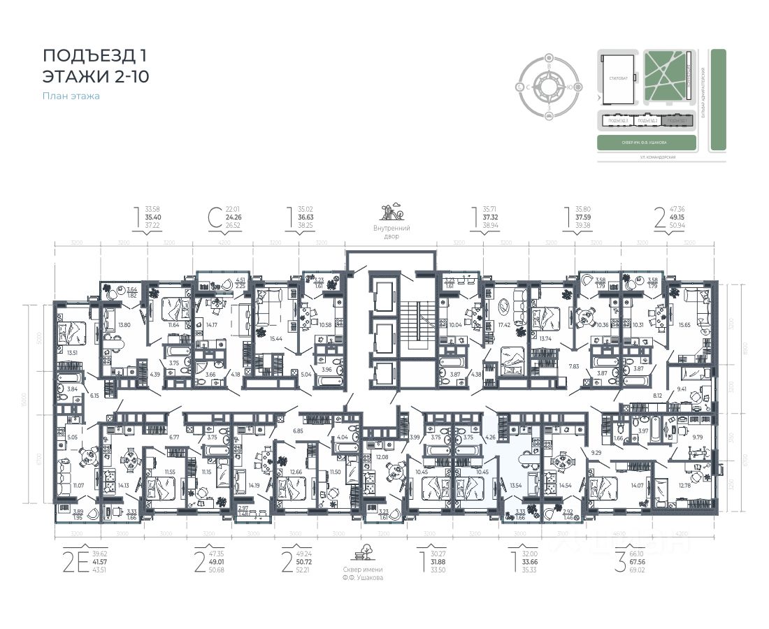 — эргономичные планировки от студий до 3-комнатных квартир;