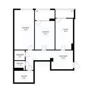 Площадью 64,5 м² (общая площадь с балконами — 70,5 м²) на 13 этаже 22-этажного дома. Светлые и просторные — жилые комнаты 27,5 м², кухня 12,03 м², потолки высотой 2,85 м создают ощущение простора.