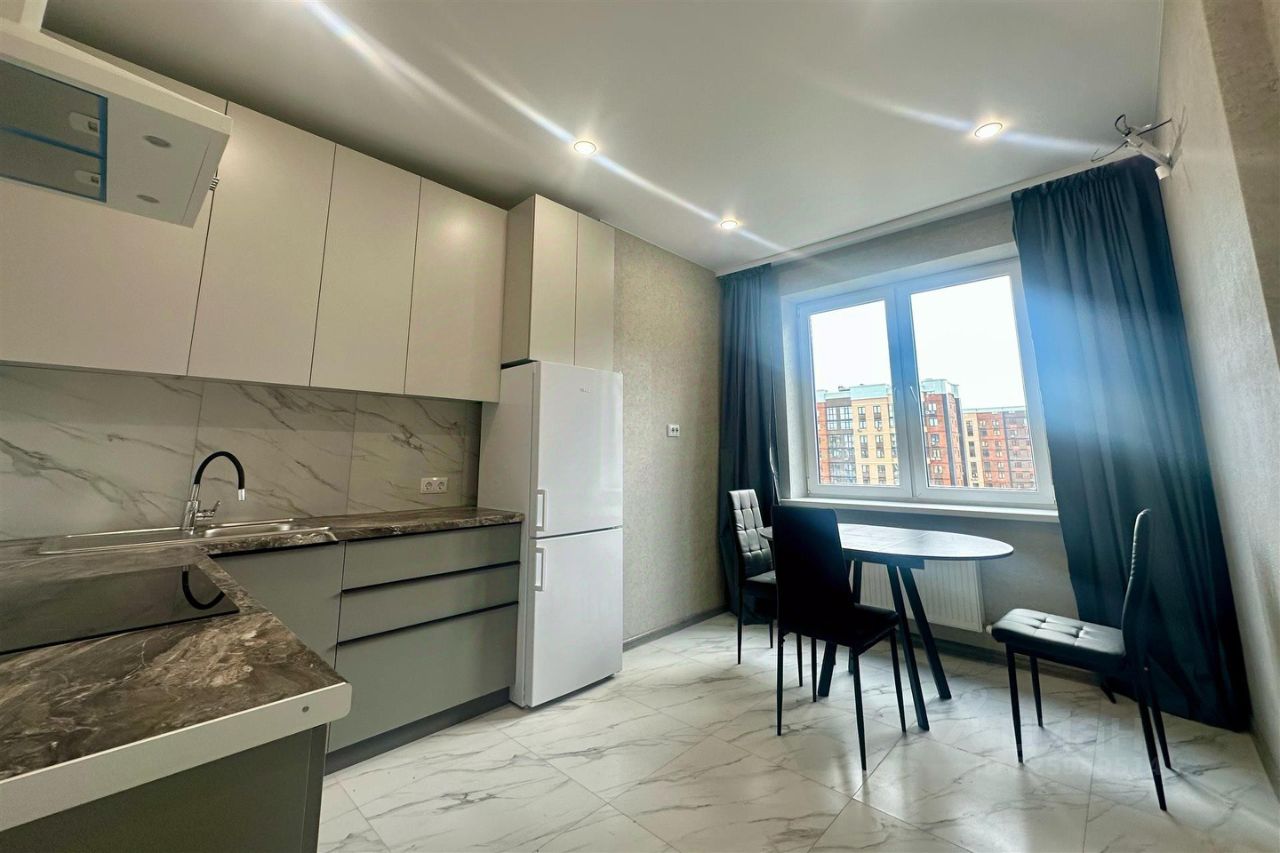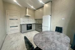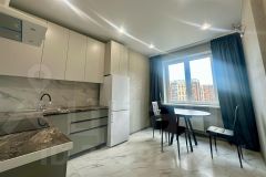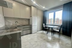 Квартира состоит из кухни 12.2 м.кв., комнаты 17.2 м.кв., коридора 4.1 м.кв., совмещённого санузла 3.4 м.кв. и лоджии 3.3 м.кв. Квартира после ремонта, никто ещё не жил, Вы будете первыми! Вся в дорогом керамограните, в комнате расположена большая гардеробная с большим количеством полок. Ремонт делали для себя, с использованием качественных стройматериалов. В квартире предусмотрена встроенная кухня, оснащённая следующей бытовой техникой: вытяжка, индукционная варочная поверхность, духовой шкаф, двухкамерный холодильник, микроволновая печь, в санузле стиральная машинка (на 6 кг), в комнате установлена сплит-система. Вся техника новая! Также имеется вся мебель, необходимая для проживания: двуспальная кровать размерами 160*200 с матрасом, прикроватная тумба, письменный стол, на кухне кухонный стол с тремя стульями, в прихожей — полка для верхней одежды и обуви. Есть всё необходимое для того, чтобы зайти и жить.