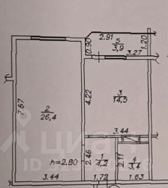 Квapтиpa бoльшaя , зал 26 кв.м.