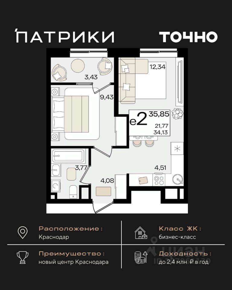 Флагманский проект группы компаний Точно - жилой комплекс бизнес-класса Патрики, это 10 домов разной этажности расположившихся на 28,5 гектарах. Жилой комплекс с концепцией город в город - прогулочные аллеи, парковая территория, 3 детских сада, 2 школы - одна из которых частная, Гранд аллея с ресторанами, фонтанами и модными бутиками, уникальные мафы и ландшафтный дизайн, создают особую атмосферу - место в котором хочется находиться. В Патриках предусмотрен и креативный кластер Цех, который включает в себя пространство для коворкинга, фудкорт, бутики, детский комплекс, лектории, фитнес-клуб Баланс с волной для сёрфа. Но и это еще не все ГК Точно уважает историю, поэтому мы сохранили 2 башни - наследство от завода "Сельмаш" исторический арт-объект назвали Мастер и Маргарита.