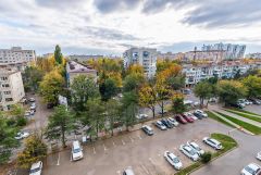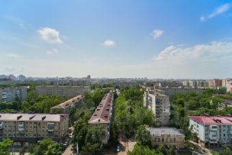 Высокий этаж позволит любоваться панорамой города, видовые характеристики подчеркиваются витражным "французским" остеклением из кухни-гостиной, спальни и лоджии