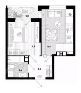 Продаётся 1-комнатная квартира в ЖК "Самолёт".