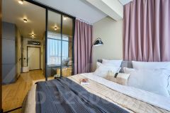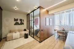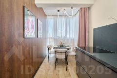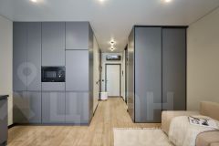 Квартира общей площадью 27м2, с балконом площадь 35м2. Выполнен новый ремонт, установлена дорогая мебель и встроенная техника, стильная кухня с окрашенными фасадами. Квартира зонирована, кухня отделена от спальной комнаты, при этом оставляя большое количество естественного света.