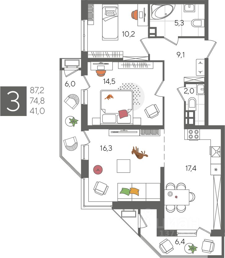 В продаже 3-комнатная квартира от застройщика! ЖК "Рекорд" 2 очередь, г. Краснодар, Литер 4 Срок сдачи: 4 кв. 2026, общей площадью 87.2 кв.м., на 9 этаже.