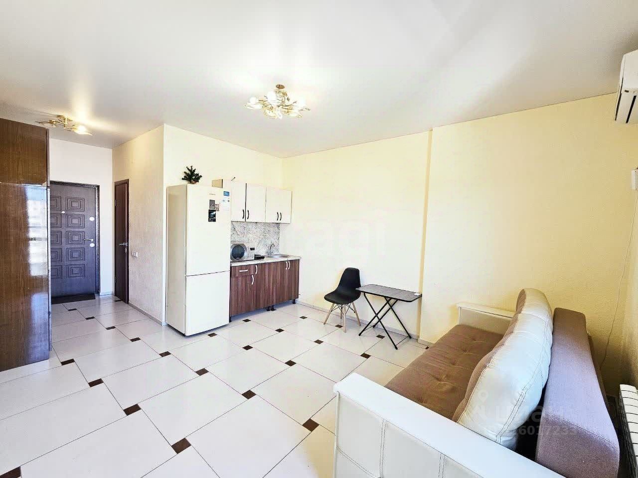 Студия площадью 23,1 кв. м расположена в новом жилом комплексе в Мысхако, в непосредственной близости от моря. Ключевым преимуществом объекта является панорамный вид на море, который открывается из основной комнаты и с собственного балкона. Планировка эффективно организована: единое пространство площадью 17 кв. м совмещает кухню и гостиную, что создает ощущение простора и наполняет квартиру естественным светом. Выполнен ремонт в световой светлой гамме с практичной отделкой: на полу уложена керамическая плитка, что идеально для сдачи в аренду, стены окрашены. В стоимость входит вся необходимая мебель и бытовая техника, что позволяет сразу начать эксплуатацию. Квартира полностью подключена к центральным коммуникациям — водоснабжение, электричество и отопление. Район отличается развитой инфраструктурой: в шаговой доступности находятся детские сады, школа, медицинские учреждения, скверы, спортивные и детские площадки, а также кафе и магазины. Пляж и море доступны всего в пяти минутах неспешной прогулки. Высокая транспортная доступность обеспечивает удобную связь с центром Новороссийска. Объект представляет собой перспективный актив для инвестиций в посуточную или долгосрочную аренду благодаря расположению, виду и готовности к заселению. Юридическая чистота сделки гарантируется! Звоните и записывайтесь на просмотр!.