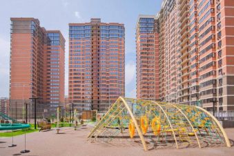 Территория жилого комплекса благоустроена: лаунж-зоны, зоны для занятием спортом, детские игровые площадки, амфитеатр, много парковочных мест.