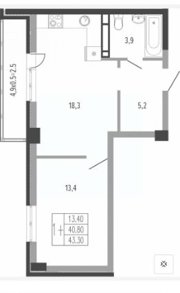 Площадь квартиры: 43,3 кв.м.