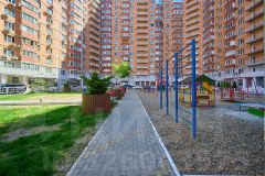 Начнём с комплекса: полностью закрытая территория, въезд только через откатные ворота с помощью пультов, в подъезде бдительный консьерж, детские и спортивные площадки, озеленение, подземный и многоуровневый надземный паркинг для жильцов(кстати в комплекте с нашей квартирой идёт парковочное место для автомобиля). Отдельно стоит упомянуть качество постройки дома: для этого дома слова СНИП и ГОСТ не пустые звуки, убедитесь в этом самостоятельно при просмотре!