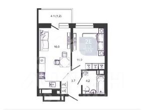 Площадь квартиры 39 кв м, кухня-столовая 16 кв м с выходом на лоджию , спальня 11 кв м.