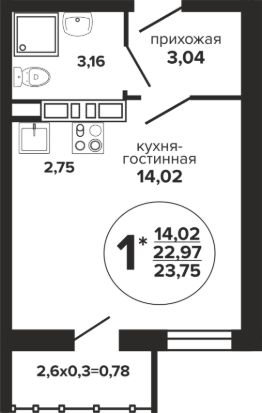 Общая площадь23,75 м²