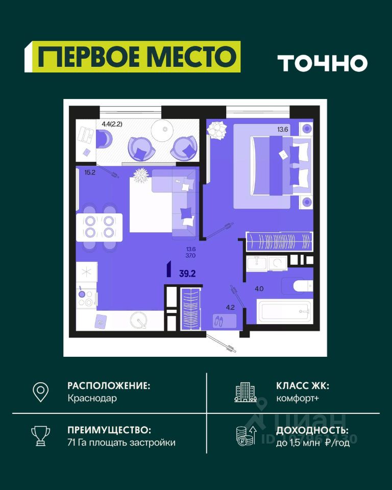 Жилой район "Первое место"- один из самых масштабных проектов в России. На территории 71 га 18 кварталов, 31 дом переменной этажности от 8 до 18 этажей, собственный парк 9 га, храмовый комплекс, пешеходный бульвар "Круг семьи", детские и спортивные площадки, мангальные зоны и различные локации для отдыха. В шаговой доступности действующие муниципальные образовательные учреждения: школа на 1 100 мест и детский сад на 250 мест. Помимо этого, в жилом районе "Первое место" построятся школа на 1700 мест с крытым 25-метровым бассейном и 5 детских садов на 1 490 мест. На первых этажах многоуровневых парковок "паркхабов" разместится более 61 тыс м2 коммерческих помещений. Жителям будут доступны собственный фитнес-центр, кафе, рестораны и магазины. В каждом подъезде предусмотрены дизайнерские холлы в стиле лобби отелей, консьерж-сервис, лапомойки, отдельные колясочные и велосипедные. Также в домах будут просторные кладовые помещения и комнаты для хранения почты с почтоматами для получения посылок из маркетплейсов.