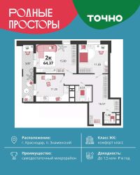 "Родные просторы"- самодостаточный микрорайон, который реализован по принципу комплексного развития территории, где есть вся инфраструктура для комфортной жизни. На территории 41 га 29 домов от 9 до 24 этажей, уютные дворы со спортивными и игровыми площадками, социальные и коммерческие объекты, зеленые массивы и фонтаны. Главная точка притяжения "Родных просторов" - парк семейного отдыха площадью 9 га, 4,5 км прогулочных аллей, амфитеатр для мероприятий, кинофестивальная площадка. Особая гордость микрорайона современная школа на 1550 мест и 3 детских сада "Ладушки", "Веснушки" и "Топотушки" на 880 малышей. В центре микрорайона строятся фитнес-клуб BALANCE с акватермальным комплексом и собственная поликлиника, площадью более 5000 кв.м. Уже открыт православный храм Святых Первоверховных апостолов Петра и Павла.