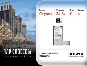 Срок сдачи: 2 кв. 2026, общей площадью 24.6 кв.м., на 11 этаже.
