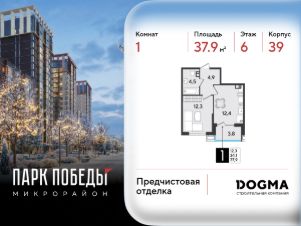 Срок сдачи: 2 кв. 2026, общей площадью 37.9 кв.м., на 6 этаже.