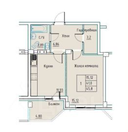 Однокомнатная квартира общей площадью 47. Кв. Метр.