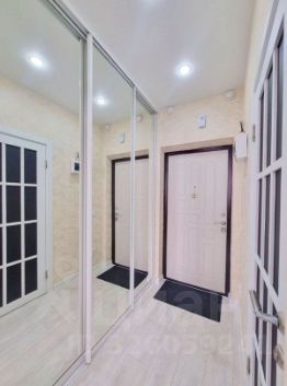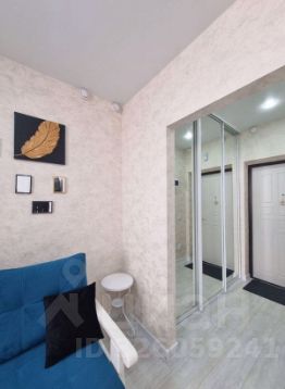 Несмотря на небольшую площадь, квартира смотрится относительно просторной, в связи с правильно подобранной и установленной мебелью. В прихожей установлен большой шкаф-купе и с учётом того, что студии покупают для проживания одного или двух человек, в этот шкаф войдут все вещи и в квартире не будет захламленности.