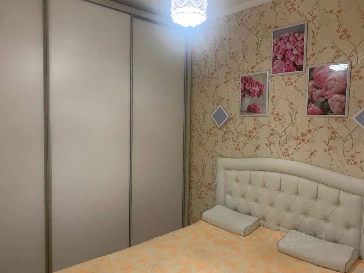 Уютная спальня, установлена 2-х спальная кровать, большой шкаф, комод и зеркало. В спальне установлена батарея, тепло и комфортно.