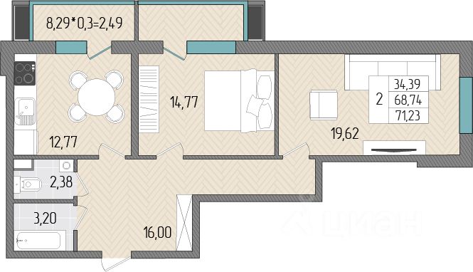 Общая площадь71,23 м²